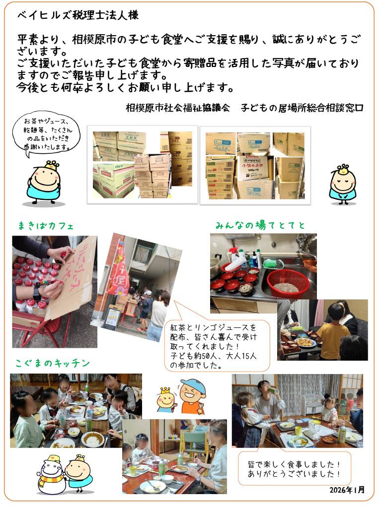 今後も継続的に支援を続けていきたいと考えております。