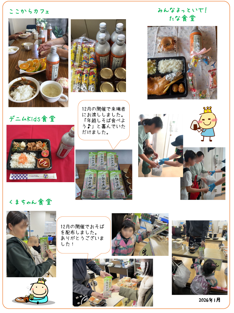 その寄付品が子ども食堂へ届けられ、子どもたちが召し上がっている様子の写真です。